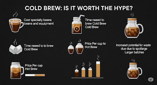 また、豆から自作する場合でも、一般的なレシピではホットコーヒーを淹れる時よりも多くの豆(1リットルあたり70g〜100g程度)を使用することが推奨されているため、「豆の消費が激しい」という印象を持つ方もいます。