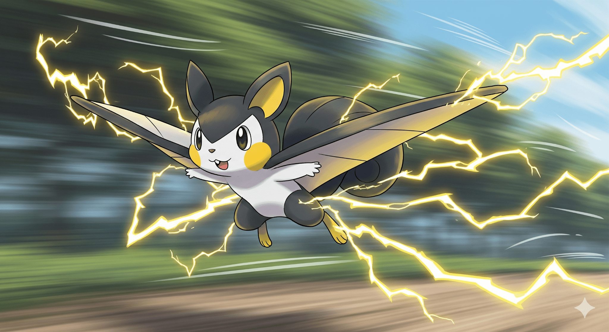 エモンガは、その愛らしい見た目からは想像できないほど高い素早さを持つポケモンです。