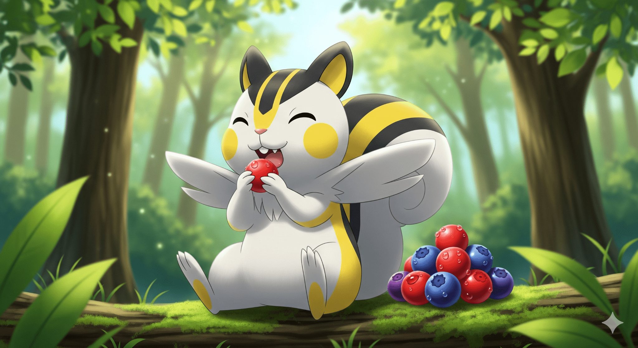 エモンガの場合、甘い木の実を食べる愛らしい姿が想像でき、その見た目の可愛らしさをより一層引き立てています。